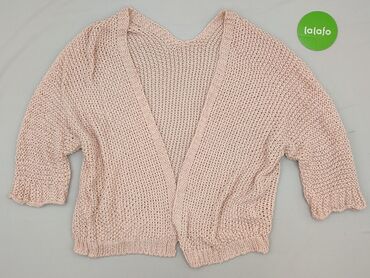 Różowy kardigan damski, rozmiar S - Krój: długi, bez zapięcia (otwarty przód) - Kolor: pudrowy róż - Materiał: cienka, przewiewna dzianina o luźnym splocie - Rękawy: długie, zakończone ściągaczami...
