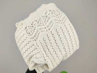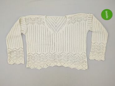 Ażurowy sweter damski, biały. - Krój: krótki/cropped, luźny - Dekolt: okrągły - Rękawy: długie - Splot: wyraźna, przewiewna siateczka (duże oczka) - Wykończenia: ściągacze przy dekolcie, mankietac...