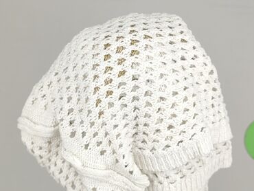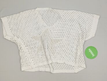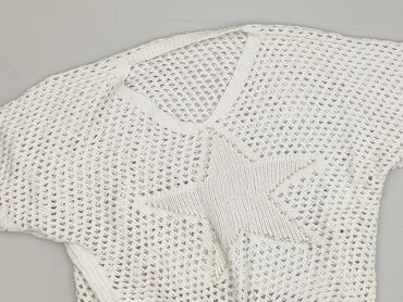 Ażurowy sweter/ponczo damskie - Kolor: biały/ecru - Krój: luźny, pudełkowy; opuszczona linia ramion - Rękaw: 3/4 - Dzianina: grubszy, ażurowy splot z dużymi oczkami – przewiewna, idealna na lato l...