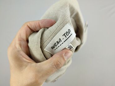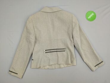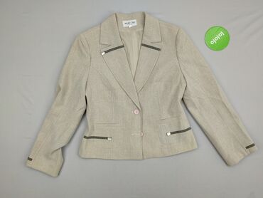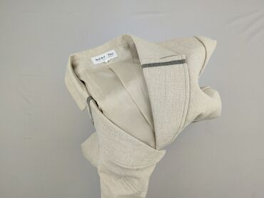 Beżowa marynarka damska, dłuższy fason - Klasyczny krój z klapami - Dwurzędowe zapięcie na dekoracyjne, srebrne guziki (4 szt.) - Dwie kieszenie z patkami z przodu - Długi rękaw - Gładka, lekko el...