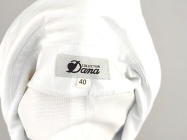 Biały krótki blazer z kolekcji Dana, wykonany w 100% z poliestru, z podszewką. Charakteryzuje się szerokim kołnierzem i zapięciem na jeden guzik, co nadaje mu elegancki wygląd. Długość rękawów 3/4 zapewnia komfort i swobodę ruchów, idealny na cieplejsze dni lub jako uzupełnienie wieczorowej stylizacji. Klasyczny krój sprawia, że jest to wszechstronny element garderoby, pasujący zarówno do formalnych, jak i mniej formalnych zestawów. Blazer jest łatwy w pielęgnacji, można go prać w temperaturze do 30 stopni Celsjusza.