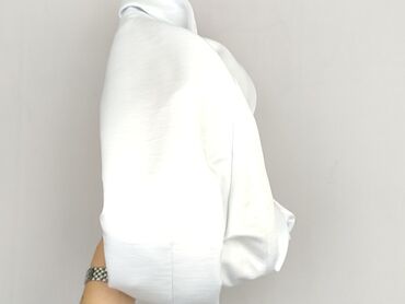 Biały damski żakiet bez zapięcia - Krój: krótki, lekko taliowany, z pionowymi przeszyciami modelującymi sylwetkę - Rękawy: długie - Dekolt: otwarty, bez kołnierza - Zapięcie: brak – luźno układają...