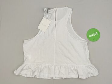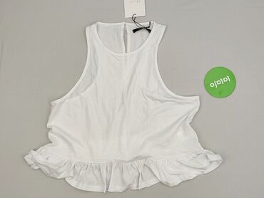 Bluzka bez rękawów – krótki top - Krój: luźny, szerokie ramiona, długość do pasa - Zapięcie: pełny rząd guzików z przodu - Dekolt: okrągły, delikatne marszczenia przy dekolcie - Dół: wszyta gumka,...