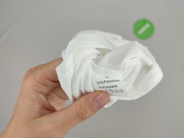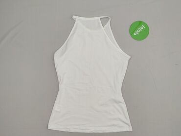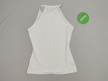 Biały top typu halter dla kobiet - Krój: halter z głębokim dekoltem V i wiązaniem na szyi - Dół z szeroką, elastyczną listwą dla lepszego podtrzymania - Materiał: 95% poliester, 5% elastan – gładk...