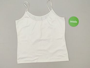 Biała damska koszulka na ramiączkach (top) - Klasyczny, prosty krój bez nadruków - Szeroki, zaokrąglony dekolt z przodu - Plecy pełne, ramiączka średniej szerokości - Materiał elastyczny, gładki, ...