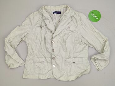 Jasny damski blazer marki Olmar Brand, wykonany w 100% z bawełny. Posiada klasyczny kołnierz i zapięcie na guziki, a także praktyczne kieszenie z przodu. Idealny do stworzenia eleganckich, jak i casualowych stylizacji, na co dzień oraz na specjalne okazje. Materiał bawełniany zapewnia komfort noszenia i przewiewność przez cały dzień. Jest to wszechstronny element garderoby, który łatwo dopasować do różnych zestawień. Jest to używana odzież damska.