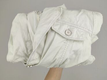 Damska kurtka denimowa w kolorze beżowym/piaskowym, fason bez kołnierza. - Materiał: denim/bawełna z domieszką elastanu (elastyczna, miękka w dotyku) - Rozmiar z metki: L (Large) - Krój: lekko tal...