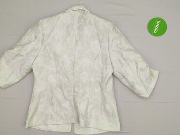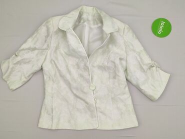 Damski żakiet w kolorze jasnozielonym, wykonany z lekkiego materiału o delikatnej fakturze. Posiada klasyczny kołnierz i zapięcie na trzy guziki z przodu. Idealny na wiosenne i letnie dni, doskonal...