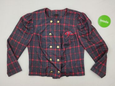 Elegancki damski blazer w kratę, utrzymany w kolorystyce szaro-czerwonej. Charakteryzuje się okrągłym dekoltem oraz dwurzędowym zapięciem na złote guziki. Ramiona są delikatnie bufiaste, a rękawy długie, co nadaje mu klasyczny wygląd. Klapa z ozdobną chusteczką dodaje szyku. Idealny do stylizacji formalnych i smart casual.Stan: Bardzo dobry.Płeć: Damski.Nowość: Używany.Charakterystyka produktu:Rozmiar: 42.Materiał: 84% Poliester, 16% Angora.Wzór: Krata.Kolor: Szary, Czerwony.Rodzaj zapięcia: Guziki.Dekolt: Okrągły.Styl: Formalny, Smart casual.Rękawy: Długie, Bufiaste.Detale: Złote guziki, Klapa z chusteczką.Długość: Standardowa.Dopasowanie: Regularne.Sezon: Całoroczny.Przeznaczenie: Na co dzień, Do pracy, Na specjalne okazje.Instrukcja prania: Prać ręcznie.Kraj produkcji: Nieznany.