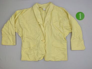 Żółta damska marynarka/koszula z krótkim rękawem - Krój: krótka marynarka o lekko taliowanej sylwetce - Zapięcie: trzy guziki z przodu, kolorystycznie dopasowane - Kołnierz: klapy w stylu marynark...