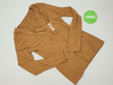 Damska bluzka z długim rękawem w kolorze beżowo-brązowym, wykonana z miękkiej i elastycznej dzianiny. Charakteryzuje się szerokim, marszczonym dekoltem, który może być noszony opuszczony na ramiona...Stan: