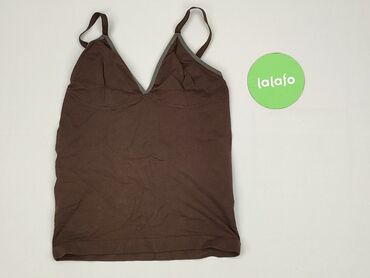 Brązowy top na ramiączkach - Klasyczny, dopasowany krój - Cienkie ramiączka typu spaghetti - Zaokrąglony dekolt z przodu i z tyłu - Gładka, jednolita tkanina bez nadruków - Miękka, elastyczna dzia...Stan: