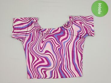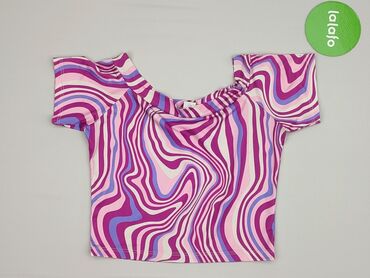 Idealna do stylizacji w klimacie retro/y2k, świetnie łączy się z jeansami z wysokim stanem czy spódnicą. Marka: AMISU. Rozmiar: M/L. Kraj produkcji: Włochy. Kolor/wzór: różowo‑fioletowe fale. Materiał elastyczny (skład nieczytelny na zdjęciach).