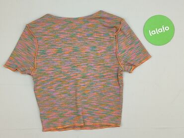 Biały crop top marki H&M Divided w rozmiarze XS. Koszulka z krótkim rękawem i okrągłym dekoltem, charakteryzująca się wiązaniem u dołu, które pozwala na regulację fasonu. Wykonana z bawełny, zapewn...Kolorowy crop top damski H&M Divided z krótkim rękawem i okrągłym dekoltem. Materiał w prążek z melanżowym wzorem w odcieniach różu, zieleni i pomarańczy. Wyraźne szwy biegnące poziomo i pionowo dodają struktury. Idealny na co dzień.