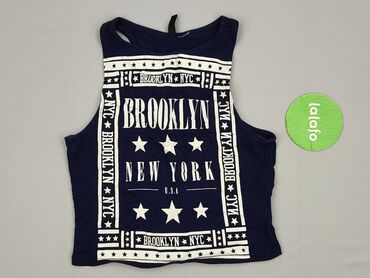 Top crop H&M Divided “HAWAII 10” - Model: krótki top na ramiączkach (crop top), wycięte pachy, lekko dłuższy tył - Kolor: granatowy - Nadruk z przodu: napis HAWAII 10 z hibiskusami (biały) - Mater...