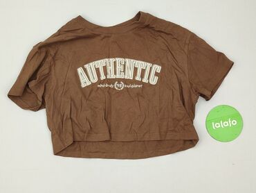 Top House Brand Eco Aware – damski, krótszy T‑shirt - Marka: House Brand (linia Eco Aware) - Rozmiar z metki: XL - Fason: krótki crop top z krótkim rękawem; na dole doszyty pasek/wiązanie tworzące...