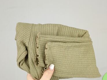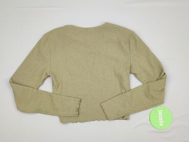 Krótki sweter/crop top damski z długim rękawem - Kolor: oliwkowy/khaki - Fason: krótki (crop), lekko opuszczone ramiona, szeroki dekolt łódkowy - Rękawy: długie, zakończone szerokimi mankietami - ...Stan: