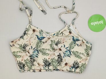 Top damski C&A Clockhouse - Model: krótki top na ramiączkach spaghetti - Rozmiar z metki: 38 - Materiał: 100% wiskoza (lekka, przewiewna tkanina) - Kolorystyka: błękitne tło - Wzór: tropikalny – l...