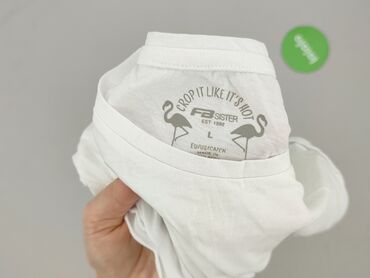 OkrągłyBiała koszulka typu crop top FB Sister (napis wewnątrz: “Crop it like it’s hot”, rozmiar L).