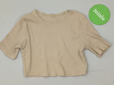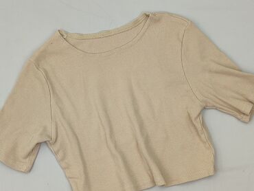 Damski top na ramiączkach w beżowym kolorze, wykonany z prążkowanego materiału. Posiada okrągły dekolt i jest w rozmiarze S. Idealny na co dzień, na lato lub jako element stylizacji warstwowej. Mat...
