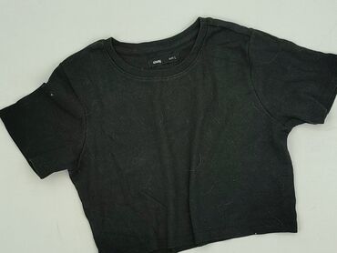 Żółty top crop Sinsay dla kobiet - Marka: Sinsay - Rozmiar z metki: L - Krój: krótki crop top - Rękaw: krótki - Dekolt: okrągły - Materiał: prążkowana, elastyczna dzianina (miękka, dopasowuje się ...