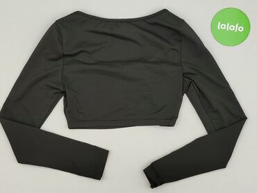 Czarny krótki top SHEIN z długim rękawem - Marka: SHEIN - Rozmiar: S (EU 36 / US 4) - Fason: crop top, dopasowany - Dekolt: głęboki, półokrągły z wszytą beżową wstawką z marszczonej siateczki/tiul...