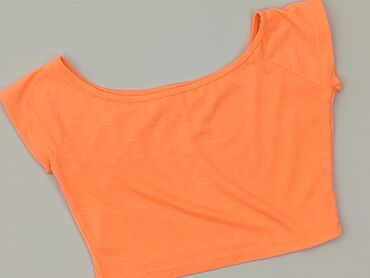 Różowy top Sinsay, rozmiar S. - Krótki fason (crop top) z krótkim rękawem - Prążkowana, elastyczna dzianina - Okrągły dekolt - Długie troczki do wiązania przy dolnej krawędzi (możliwość dopasowani...