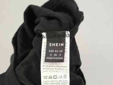 Czarny top SHEIN XS - Marka: SHEIN - Rozmiar: XS (EU 34, US 2) – metka widoczna na zdjęciu - Fason: krótki crop top z krótkim rękawem - Przód: dekoracyjne wycięcia z pionowym marszczeniem i dwiema...