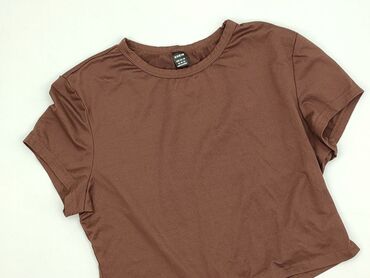 Brązowy top/crop top SHEIN - Krój: krótki top z okrągłym dekoltem i krótkim rękawem - Dół z doszytym paskiem do wiązania (możliwość regulacji i podkreślenia talii) - Materiał: 94% bawełna, 6% elas...