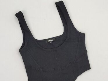 Czarny top typu crop - Marka: FB Sister - Rozmiar z metki: XXS (EU/DE) - Krój: krótki, bez zapięć, na szerokich ramiączkach - Dekolt: zaokrąglony z przodu i z tyłu - Materiał: prążkowana dzianina ...