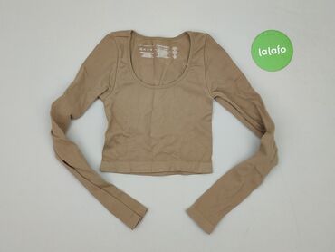 Top/crop Primark Cares - Marka: Primark Cares - Model: prążkowany top z długim rękawem - Fason: krótki crop, dekolt w serek (V-neck), dopasowany - Kolor: beż/taupe - Rozmiar na metce: S - UK/IRL...