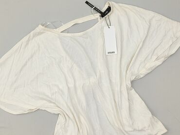 Bluzka damska z miękkiej, marszczonej tkaniny (double gauze) – kolor ecru/kość słoniowa. - Skład: 100% bawełna (metka w środku) - Rozmiar z metki: L - Krój: luźny, przewiewny - Rękaw: krótki - Dek...Stan:
