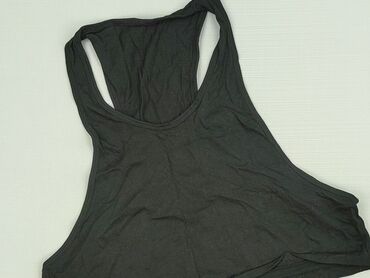 Czarny top sportowy/ribbed crop top - Fason: bez rękawów, zabudowany przód, mocno wycięte pachy, plecy typu racerback - Długość: krótka (crop) - Materiał: elastyczna, prążkowana dzianina (rib), do...