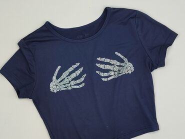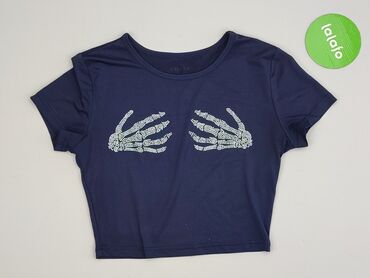 Krótka bluzka damska SHEIN - Marka: SHEIN - Rozmiar z metki: S (EU 36, US 4) - Fason: crop top z głębokim dekoltem V - Rękawy: szerokie, krótkie - Talia: marszczona/gumka w pasie dla lepszego dopa...Top damski SHEIN, krótki (crop top), granatowy.