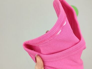 Różowy top Sinsay, rozmiar S. - Krótki fason (crop top) z krótkim rękawem - Prążkowana, elastyczna dzianina - Okrągły dekolt - Długie troczki do wiązania przy dolnej krawędzi (możliwość dopasowani...
