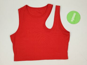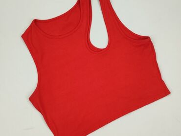 Czerwony damski top bez rękawów Pull&Bear - Marka: Pull&Bear - Rozmiar z metki: M (EUR M / USA M / MEX 28) - Fason: krótki crop top, zabudowany dekolt, szersze ramiączka - Materiał: prążkowana, el...