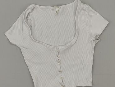 Czarny top H&M Divided – krótki, zapinany na guziki - Damski, rozmiar EU S (na metce S) - Fason: crop top, dopasowany, z krótkim rękawem - Dekolt: głęboki V - Zapięcie: rząd małych guzików z przod...