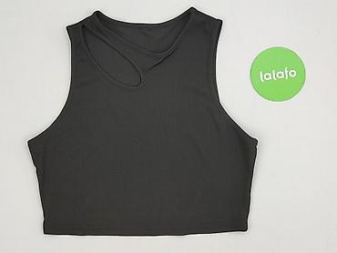 Czarny top damski typu crop, bez rękawów, z zabudowanym dekoltem i wycięciami pod pachami. - Fason: krótki, przylegający, tank top - Materiał: elastyczna, prążkowana dzianina (miękka, rozciągliwa,...