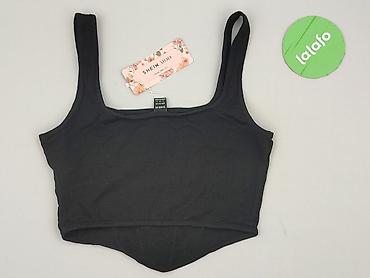 Top damski SHEIN - Model: krótki top bez rękawów z asymetrycznym wycięciem przy dekolcie - Kolor: czarny - Materiał: prążkowana dzianina 95% poliester, 5% elastan – elastyczna, dobrze dopasowuje s...