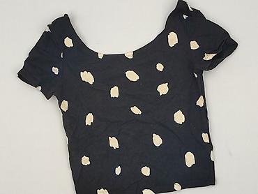 Top damski H&M, rozmiar S. - Krój: crop top, bez rękawów, pod szyję (tank). - Materiał: prążkowana dzianina elastyczna, 95% bawełna, 5% elastan. - Kolor i wzór: czarny z efektownym, rozbielanym wzo...Stan: