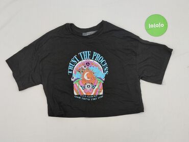 Krótki top damski Primark - Kolor: różowy z jasnoróżowym, psychodelicznym wzorem w kwiaty i szachownicę - Krój: crop top, dopasowany, krótkie rękawy - Dekolt: półgolf/stójka - Materiał: 82% polies...Czarny crop top z nadrukiem „TRUST THE PROCESS”
