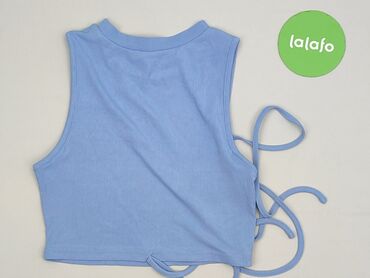 Top SHEIN – prążkowany, krótki - Kolor: jasny błękit - Fason: crop top z krótkim rękawem - Dekolt: głęboki, wiązany z przodu na dwie troczki - Materiał: miękka, elastyczna dzianina prążkowana (rib...