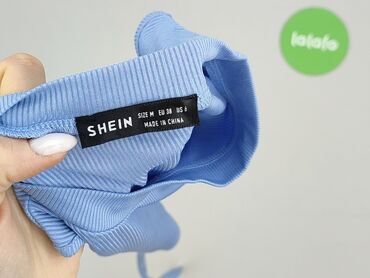 Krótkie top crop SHEIN z marszczeniem - Marka: SHEIN - Rozmiar z metki: M (EU 38, US 6) - Skład: 95% poliester, 5% spandex (elastyczny materiał, drobny prążek) - Kolor: jasny błękit - Wzór: drobne...