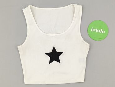 Biały krótki top damski SHEIN - Model: crop top bez rękawów z głębokim dekoltem w kształcie V i efektownym skręceniem na przodzie - Kolor: biały/off‑white, delikatny prążkowany materiał - Rozmiar ...Stan: