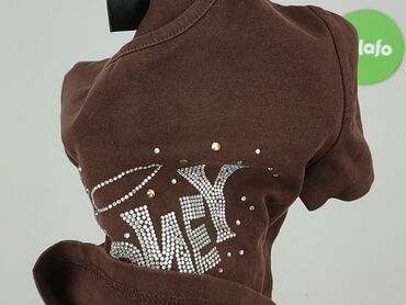 Brązowy crop top damski z krótkim rękawem. - Kolor: czekoladowy/brązowy - Napis na przodzie: „HONEY” z cyrkoniami, dookoła drobne dekoracyjne kropeczki w różnych kolorach i motyw aureoli - Krój: k...