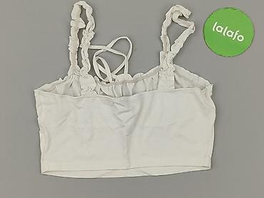 Biały krótki top damski SHEIN - Model: crop top bez rękawów z głębokim dekoltem w kształcie V i efektownym skręceniem na przodzie - Kolor: biały/off‑white, delikatny prążkowany materiał - Rozmiar ...