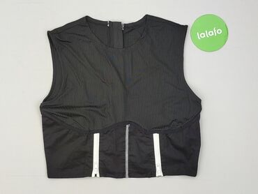 Czarny top crop SHEIN - Model: bez rękawów, z okrągłym dekoltem - Linia: Petite - Rozmiar z metki: L (Petite) - Fason: dopasowany, krótki - Materiał: elastyczna, prążkowana dzianina zapewniająca w...