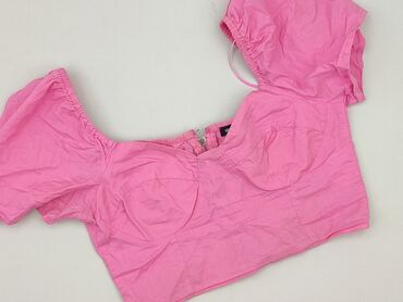 Top crop Sinsay – różowy - Marka: Sinsay - Rozmiar z metki: XL - Fason: krótki top typu crop - Rękawy: krótkie, bufiaste z gumką przy ramieniu - Dekolt: szeroki, łódka/karczek - Zapięcie: suwak z ...
