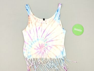 Bluzka na ramiączkach typu top/baskinka. - Kolor: beżowy dół + pas przy dekolcie w czarno‑kremowej taśmie z kolorowym, geometrycznym wzorem (trójkąty w odcieniach niebieskiego, zielonego, różu, fi...