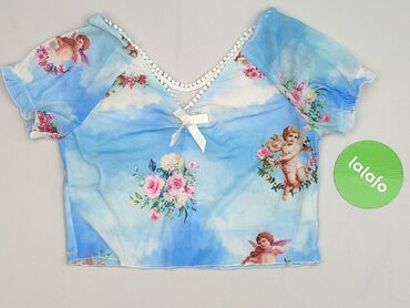 Top z krótkim rękawem SHEIN - Krój: dopasowany crop top z krótkim rękawem i stójką przy szyi - Wzór: chmury na błękitnym niebie z cherubinkami/puttami w stylu barokowym, nadruk dookoła (przód i ty...